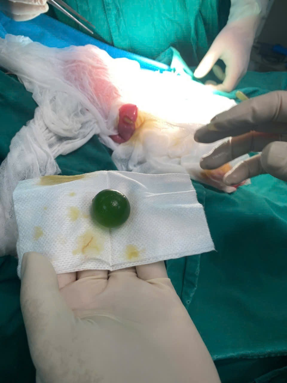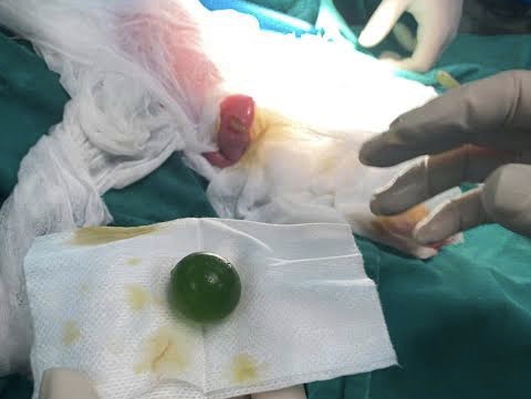 Quá trình phẫu thuật, ekip mổ phát hiện 1 viên hạt nở có kích thước lớn.